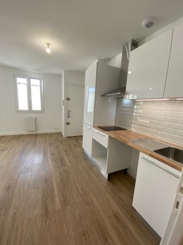 Pièce principale avec sa cuisine aménagée et équipée. L’appartement dispose d’une petite chambre éclairée par une verrière atelier, salle d'eau avec WC.