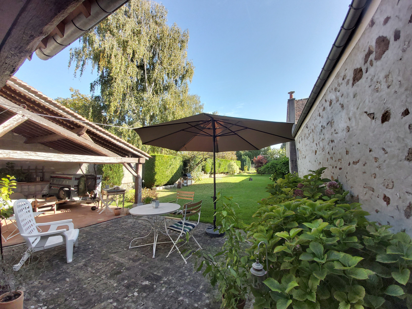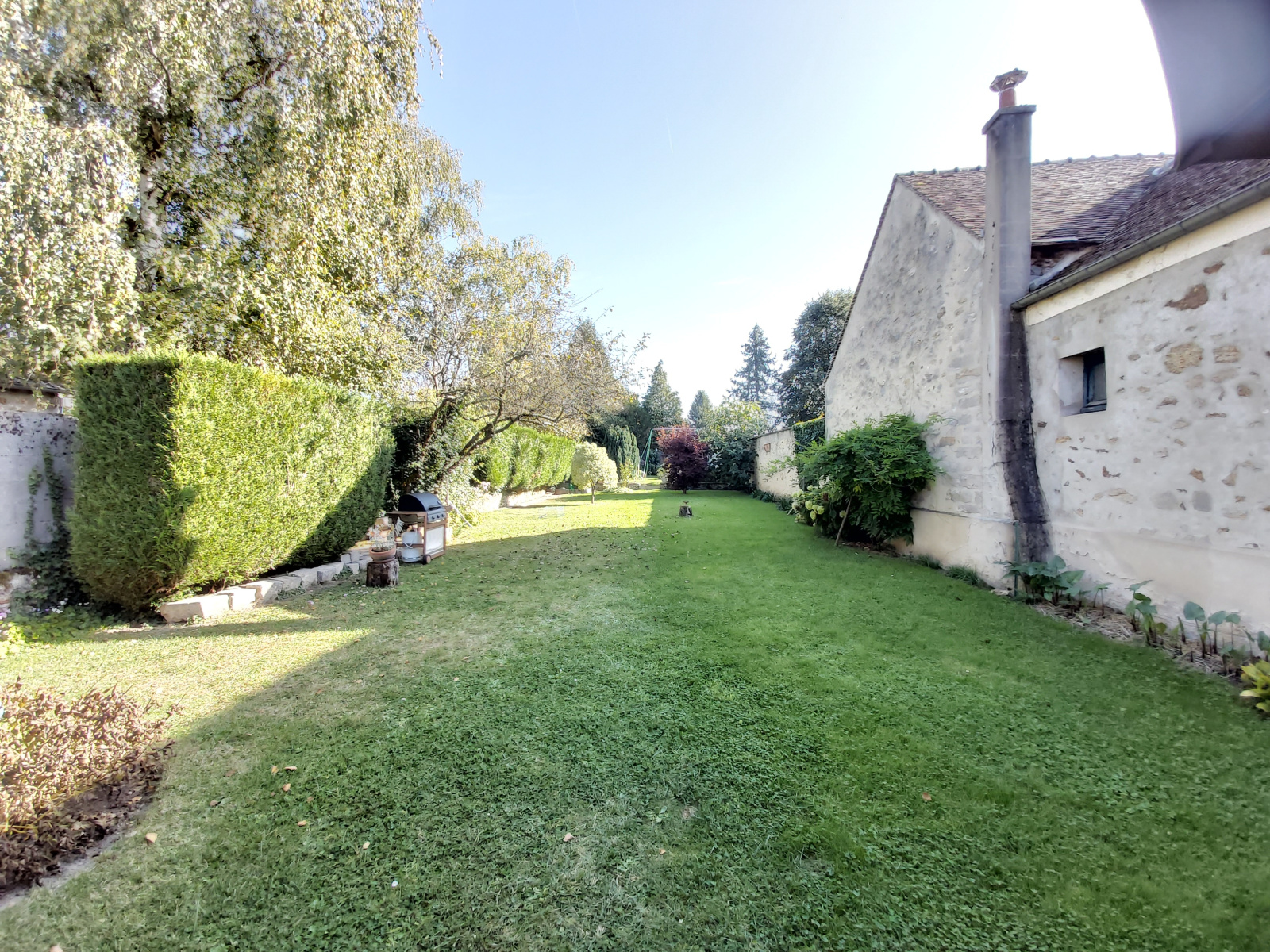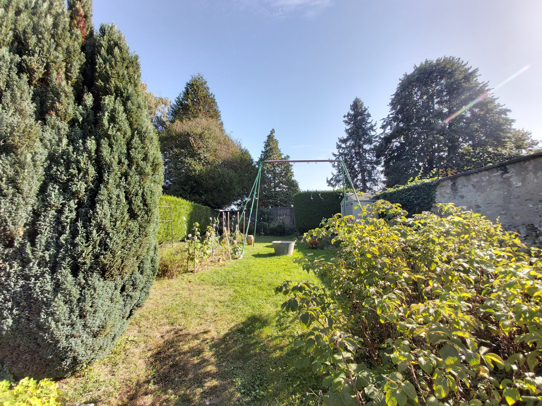 Grand jardin arboré et clos de murs.