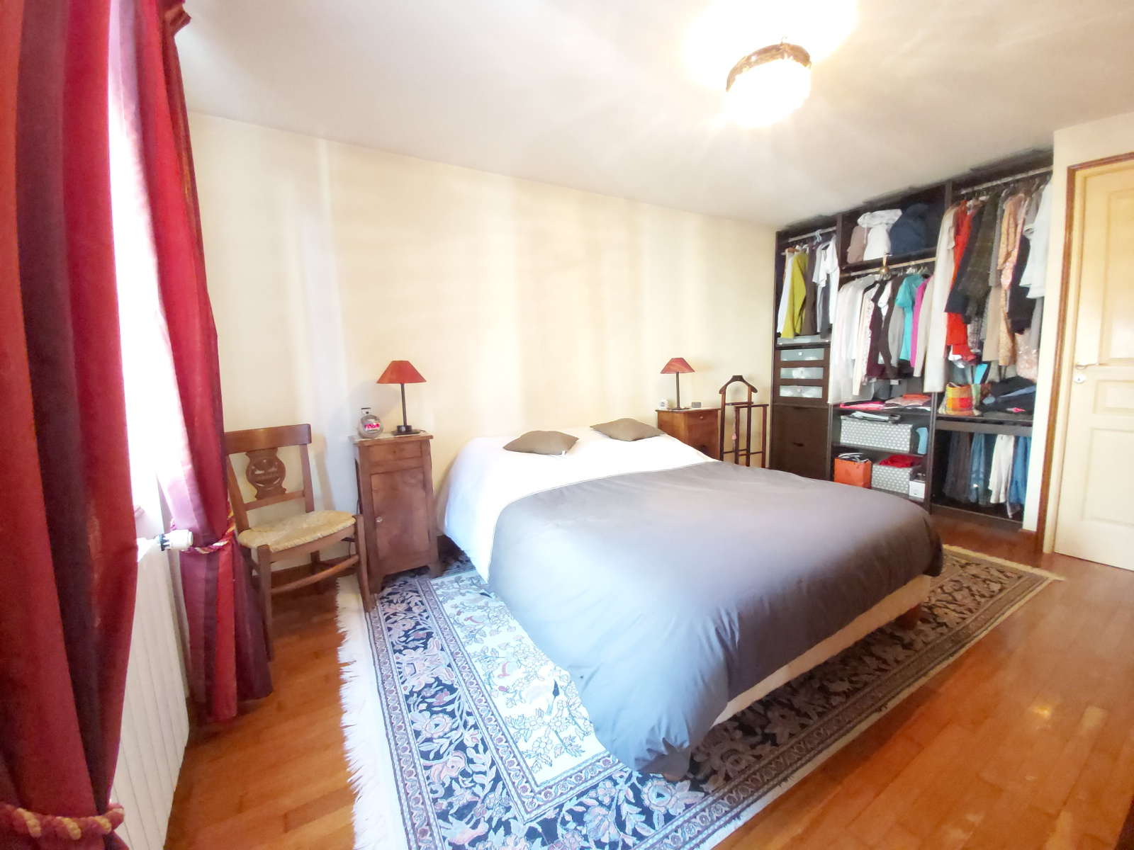 Chambre parentale avec dressing et salle de bain. Parquet au sol.