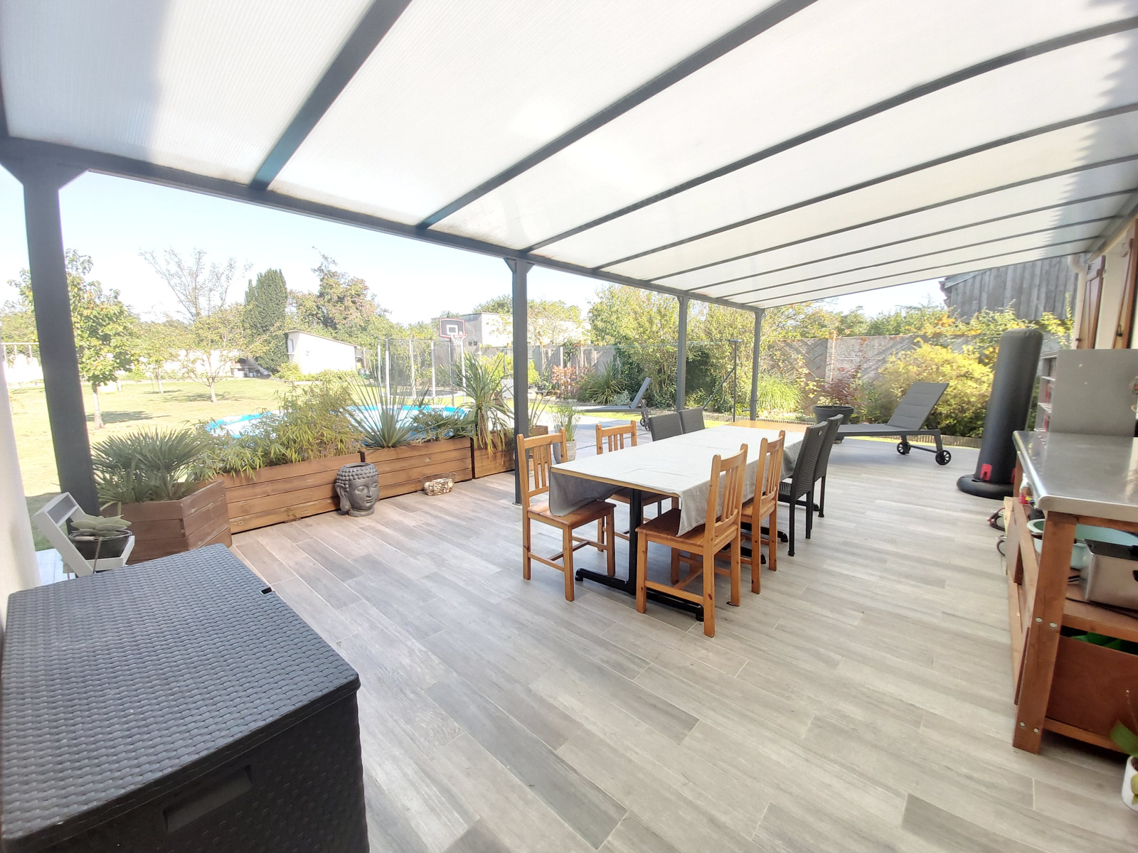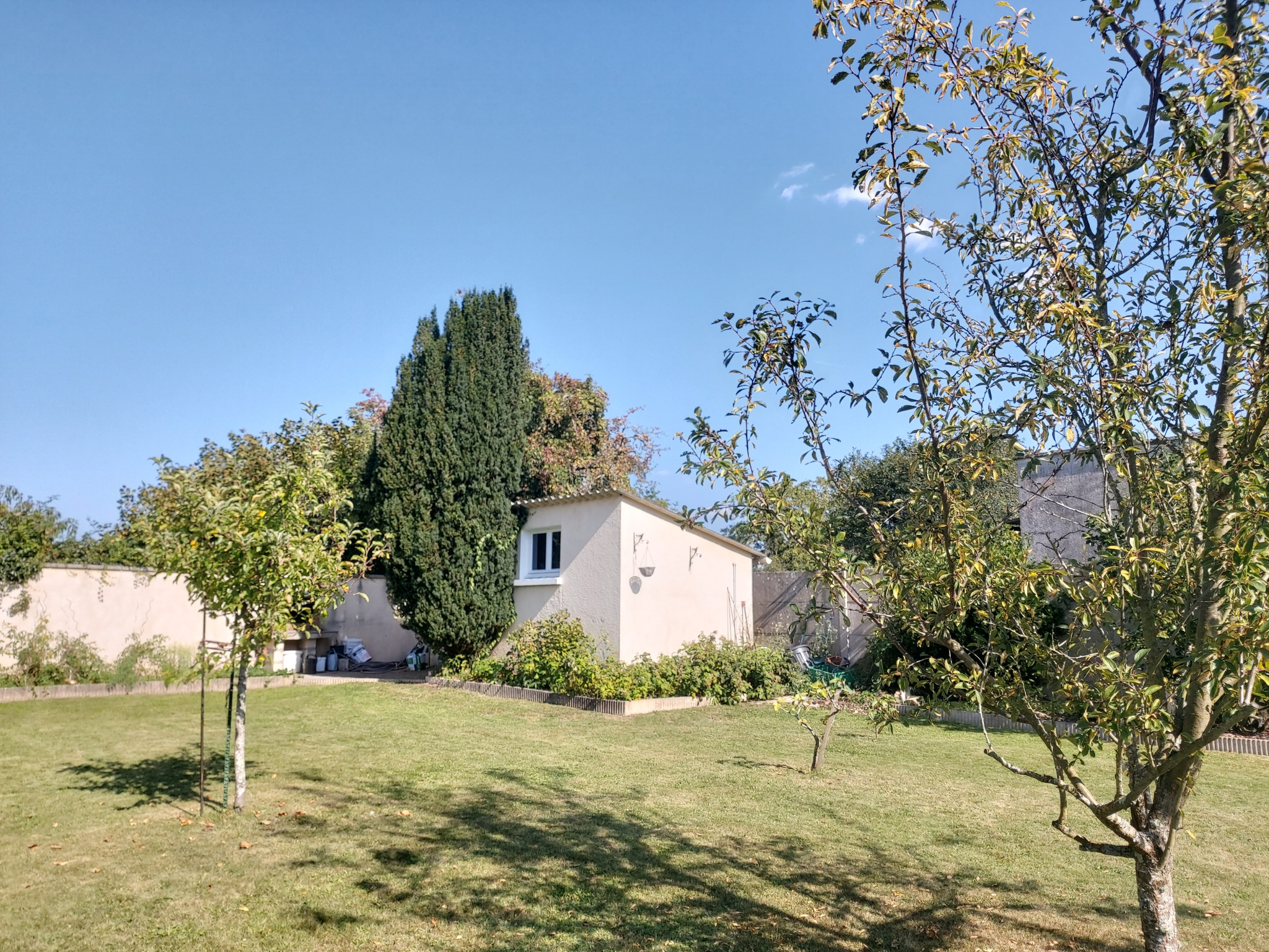 À l'extérieur, cette charmante maison vous offre un jardin de plus de 1200m2 entièrement clos et piscinable, avec une terrasse carrelée de 80m². Elle s'accompagne d'un abris de jardin édifié sur une cave ainsi qu'un barbecue extérieur.