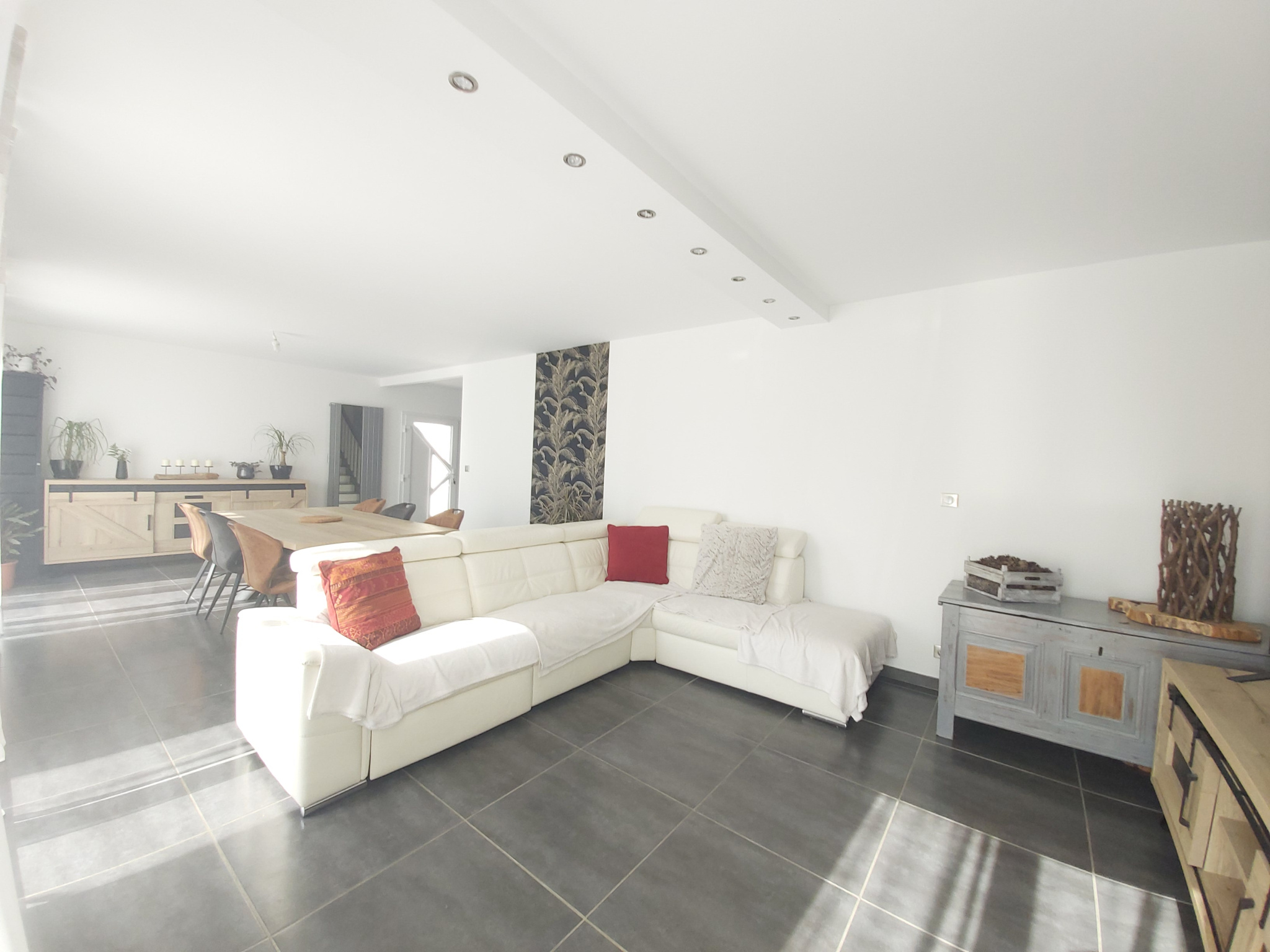 Très belle maison familiale de type F7 qui se compose d'une entrée sur pièce à vivre de 53,51m2 avec séjour, salle à manger, cuisine ouverte aménagée et équipée, vous découvrirez toujours au rez-de-chaussée, sa suite parentale de 22,76m2 avec dressing, salle de bains avec douche et baignoire qui offriront un point de confort indéniable. Un water-closet indépendant clôturera le rez-de-chaussée.